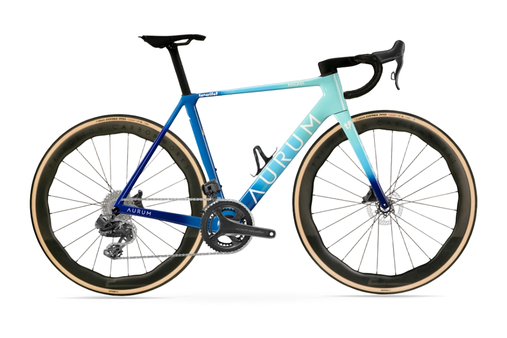 国内では「あのコンタドールとバッソが立ち上げた」のフレーズで知られるバイクブランドAURUMのロードバイクMAGMAのカスタムのご紹介です。