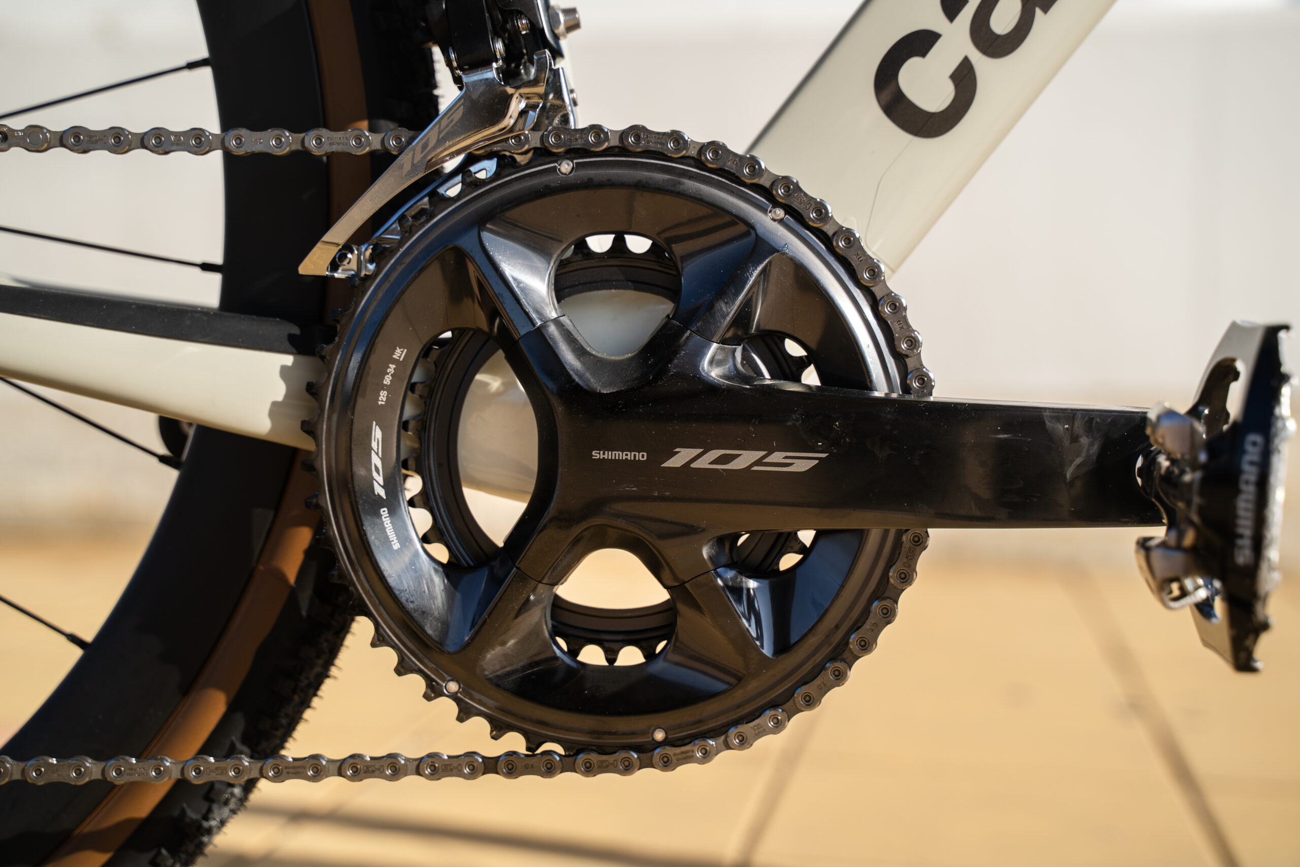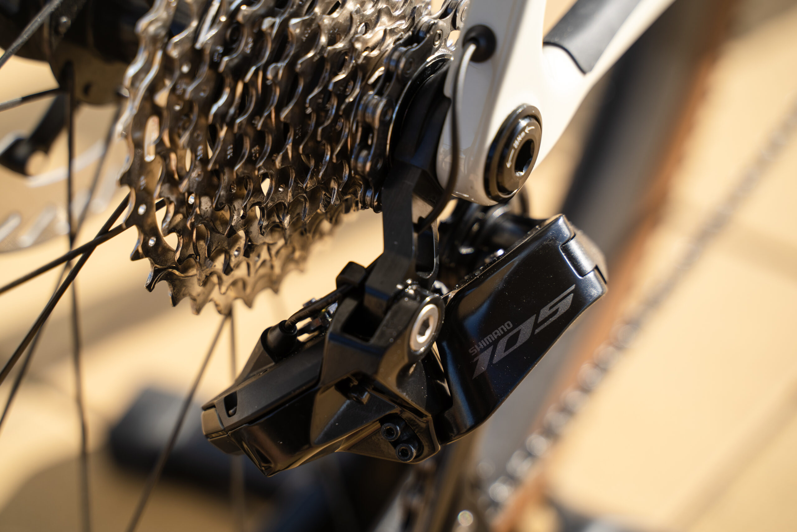 ロードバイクとしての運用が前提にあるため、グループセットは105 di2がちょうど良い選択だと思います。悪路や登坂が中心になった場合はカセットを最大36Tまで拡張できます。