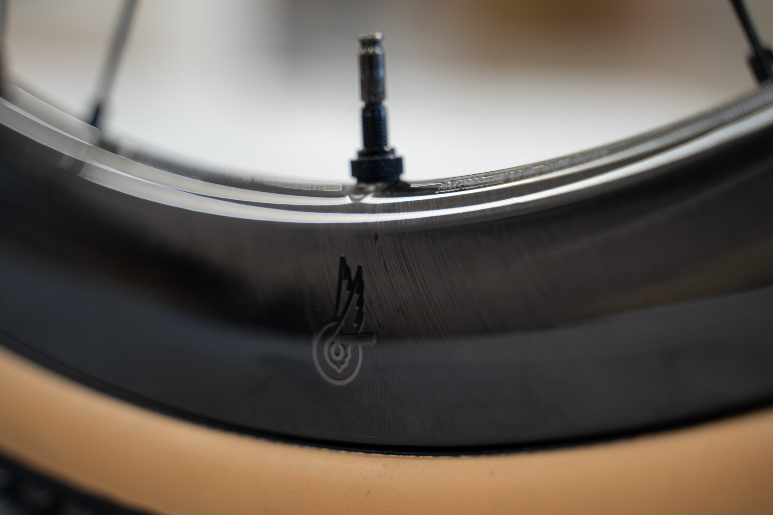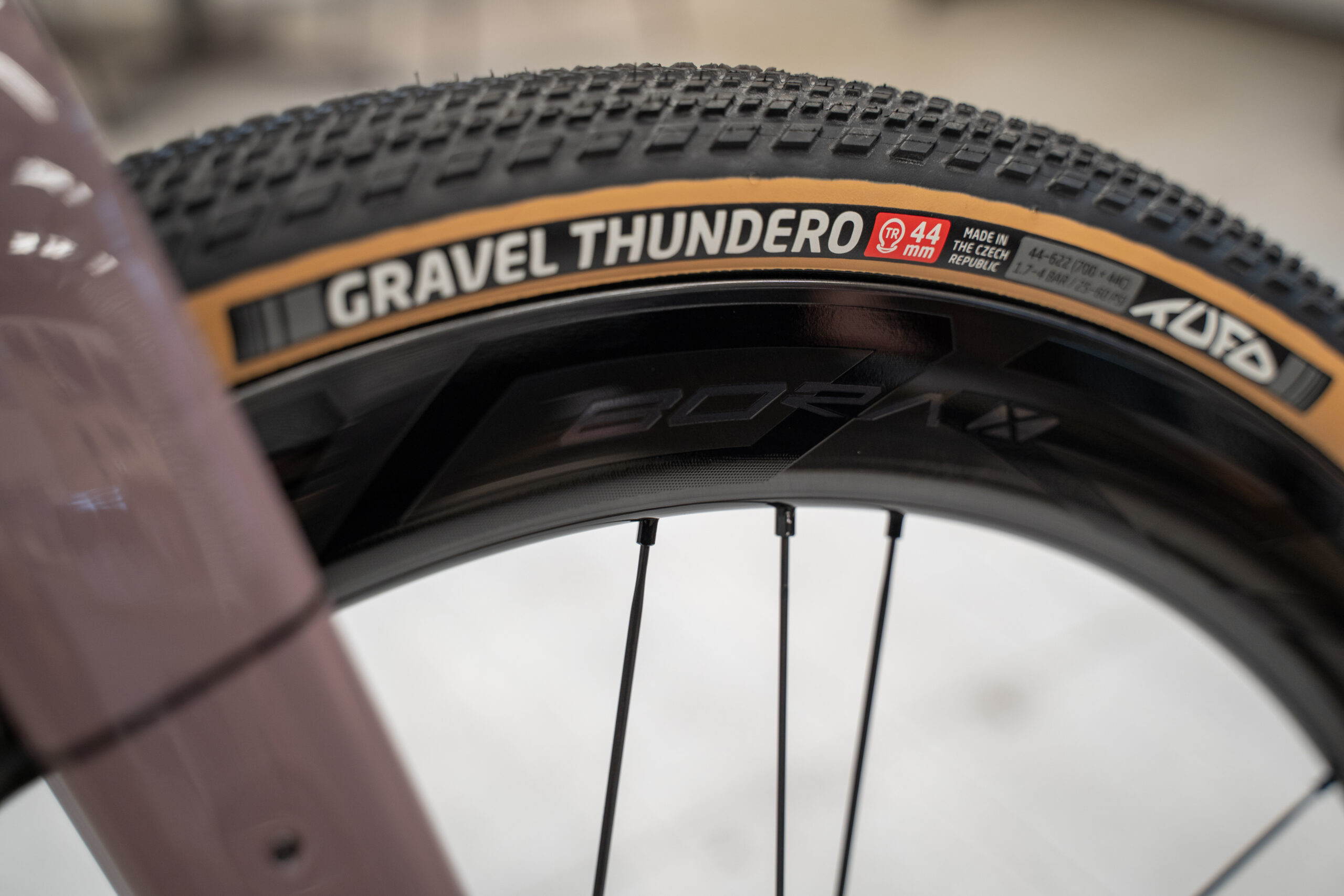 ホイールはCampagnoloのBORA X。グラベルカテゴリに本格的に乗り出したイタリアンブランドが傑作BORAの名前を用いてグラベル用に設計したハイエンドホイールです。内幅27mmにリムハイト50mmを組み合わせるトレンドを押さえた1本。ブランドのアイコンであるG3組も健在です。