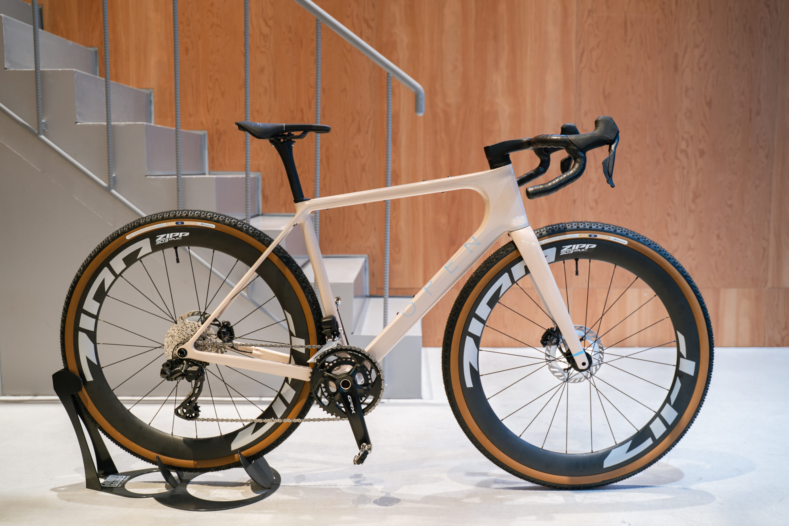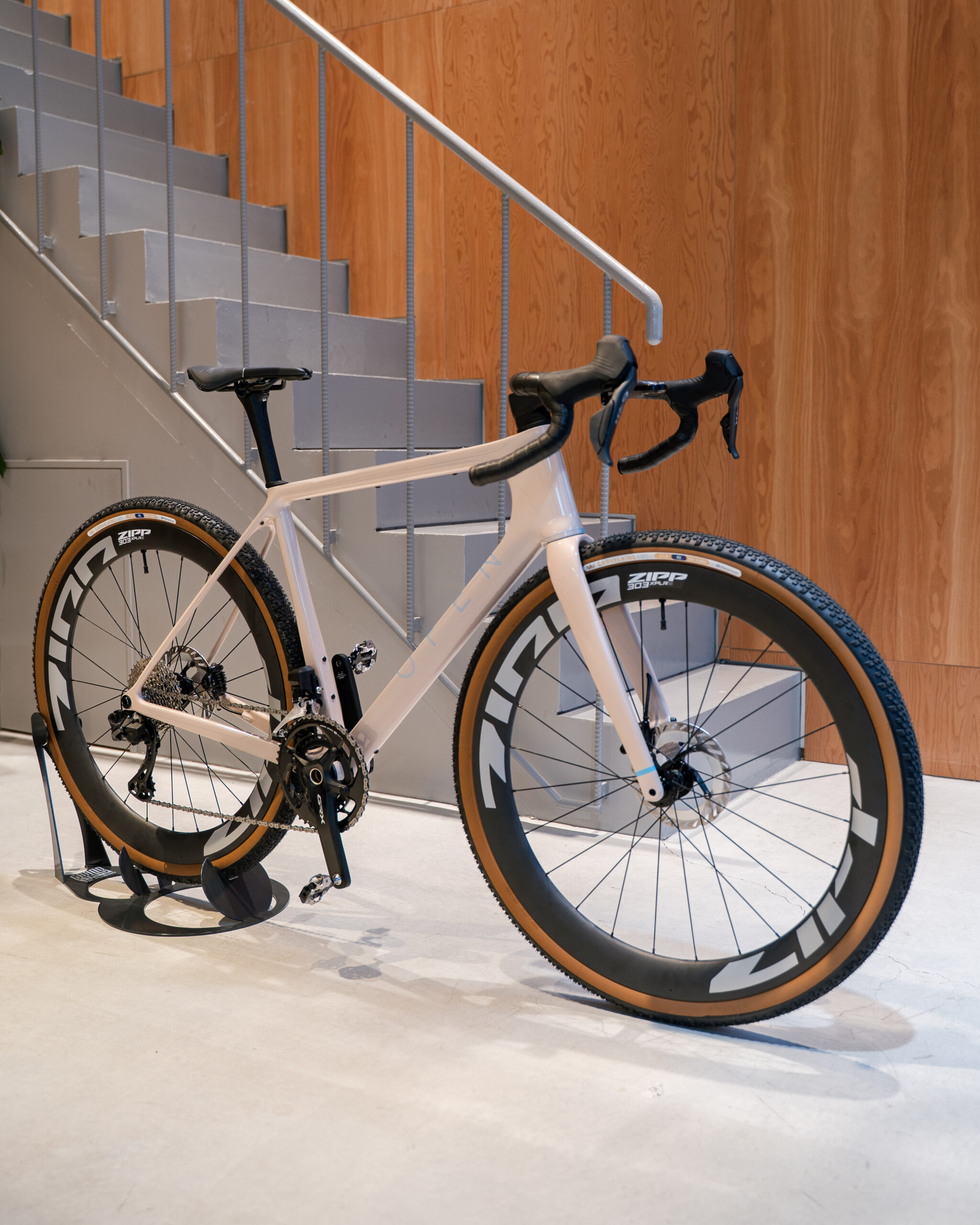 ホイールはZIPPの303 XPLR。リム内幅32mm、リム高54mmという少し前のグラベルカテゴリの常識では考えられなかった規格外のホイールです。