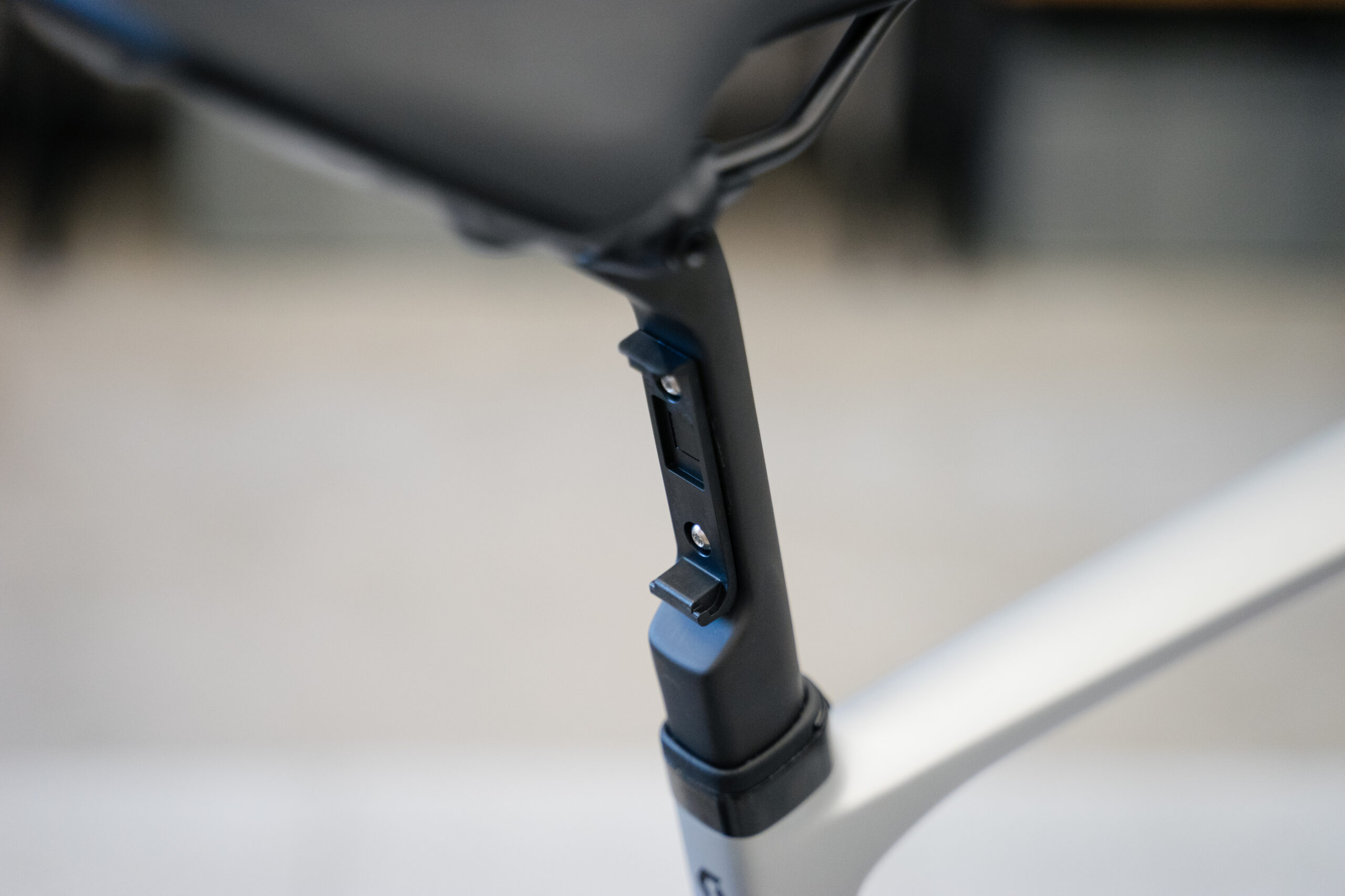 オリジナルのカーボンシートポストの後部はマグネット式のカバーを外すと専用のリアライトがぴったり装着できるよう設計されています。ゴムバンドやストラップが不要で見た目にスマートであり、空力的にも優れています。