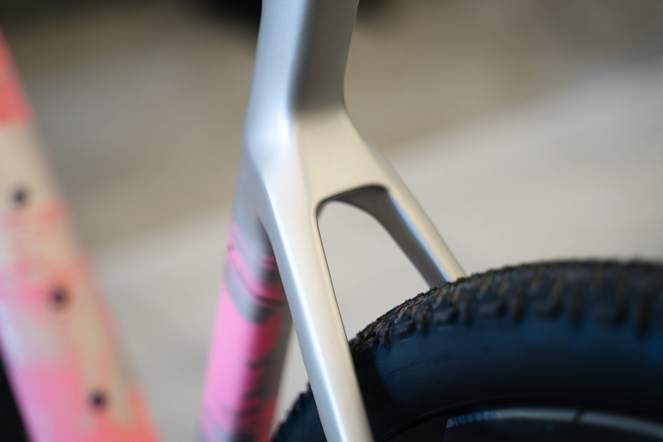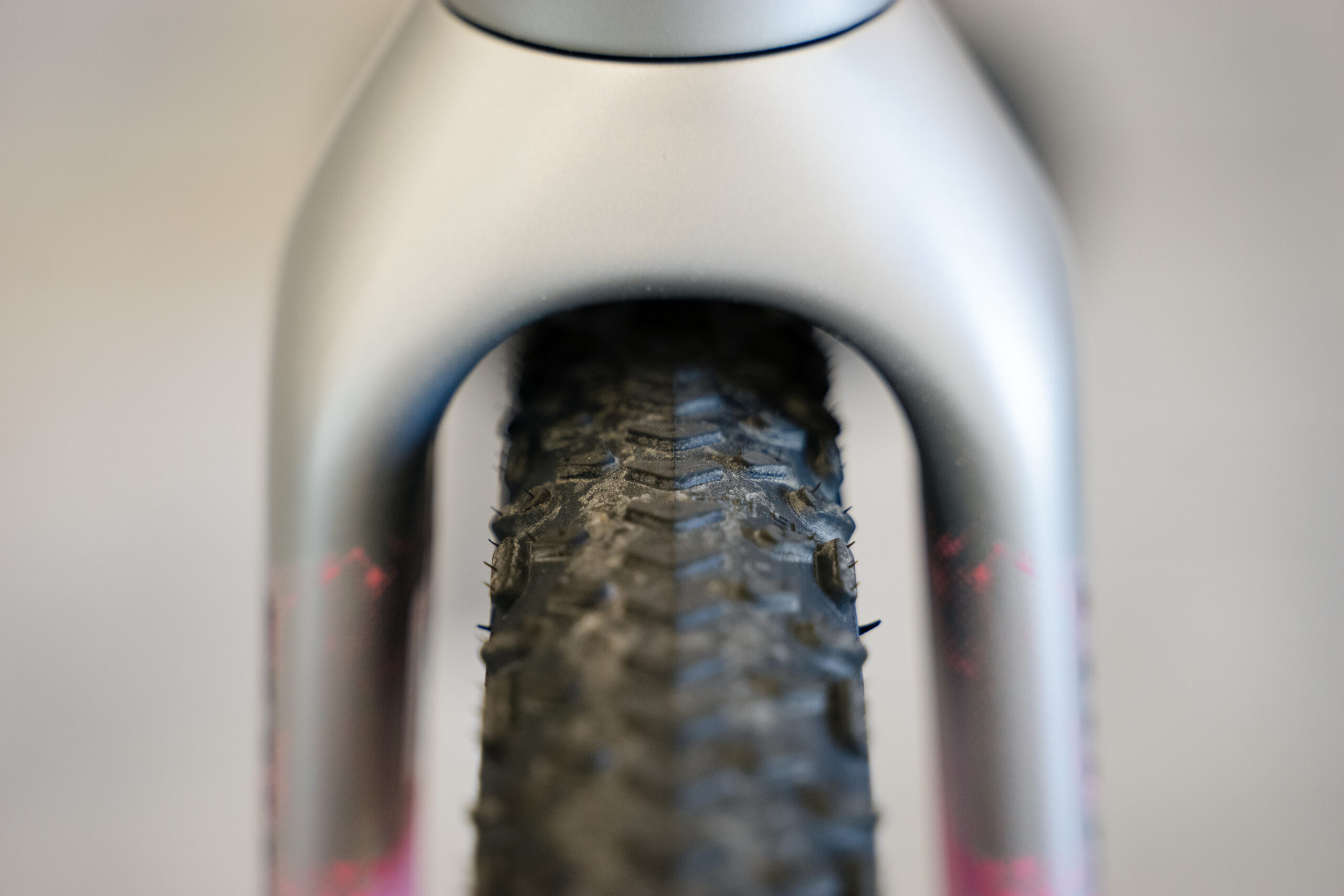 最大タイヤクリアランスは700×45C。ノブの高さにもよりますが、最初から装着されている45Cタイヤで十分なクリアランスを残しています。(フルフェンダー取付時は最大40C)